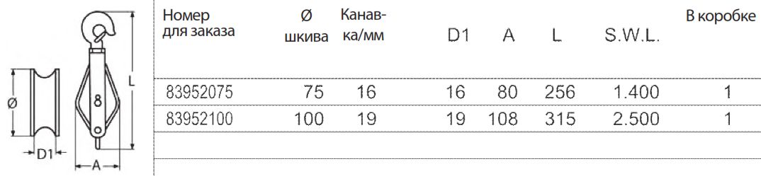 Получить подробную информацию о Блок такелажный с латунной втулкой и крюком A2-AISI 304 Вы можете у менеджера по телефонам: